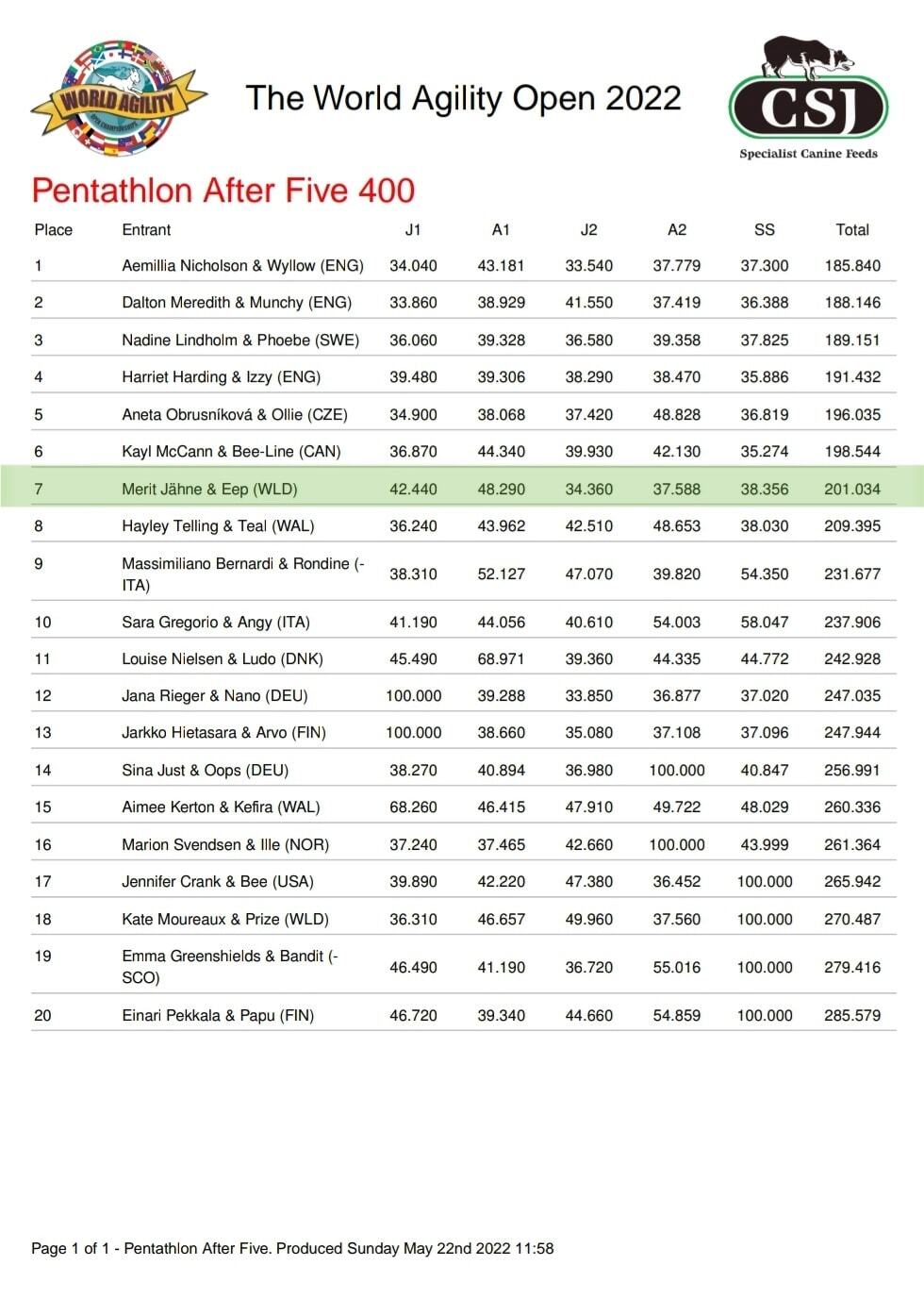 Pentathlon Overall nach fünf Runden = Platz 7/77